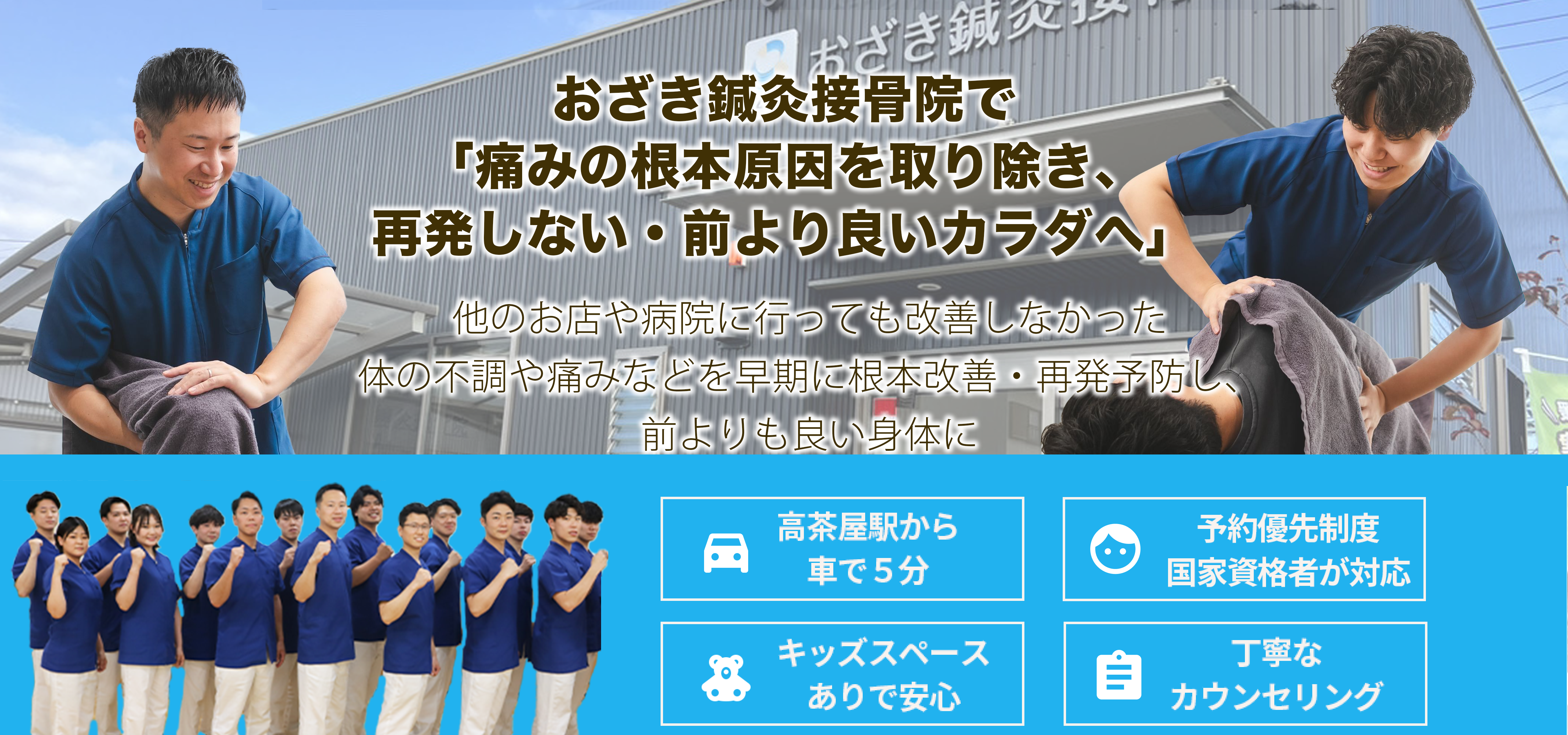 おざき鍼灸接骨院、高茶屋院院長を務めるにあたり患者様に寄り添い丁寧な問診、施術を心掛けご来院していただいた皆様の健康をサポートさせていただきます。