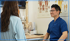 • 様々な痛みや悩みを抱えているなど、すべて問診、カウンセリング時にお伝えください。誠心誠意お話を伺います。体には意外なところに痛みの原因が潜んでいる場合もあります。思い当たることはどんな小さなことでも、スタッフにお伝えください。