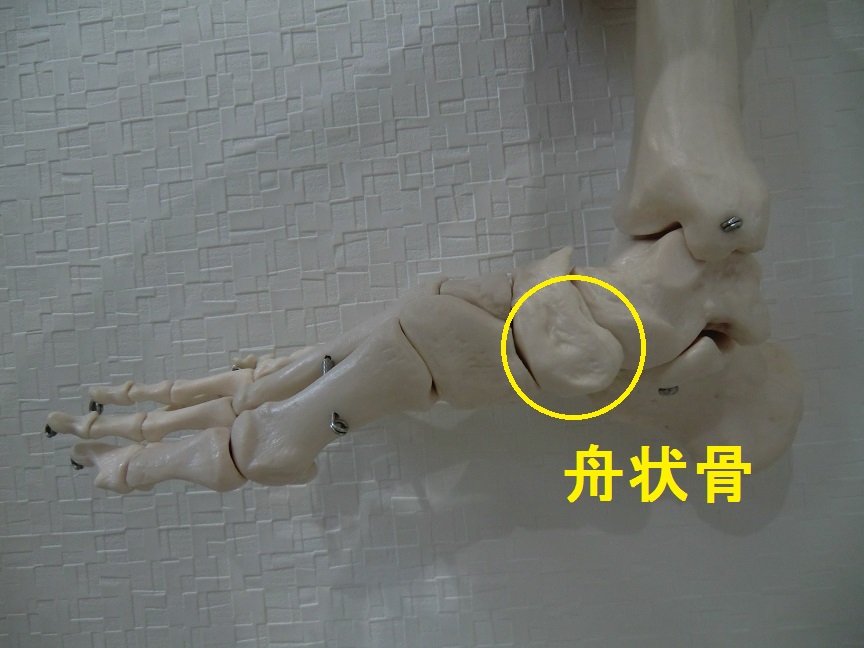 また、偏平足で足のアーチがつぶれていると後脛骨筋に余計な負担がかかりますし、サッカーのインサイドキックのように舟状骨に繰り返し衝撃が加わる動作でも同じように痛みが出ます。