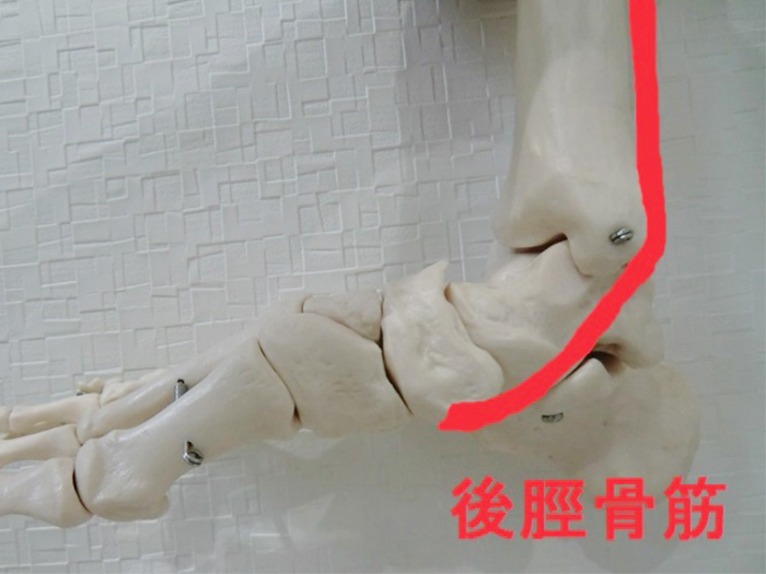 治療のポイントは、湿布を貼って終わりではなく、後脛骨筋のストレッチで柔軟性を回復することです。
