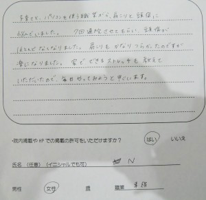• 肩こり・頭痛治療女性 N様